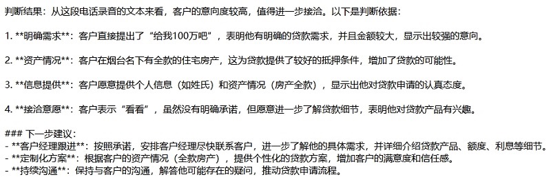 精準(zhǔn)捕捉客戶對話中的關(guān)鍵詞與情緒傾向,識別潛在需求與隱性顧慮,為后續(xù)溝通策略提供數(shù)據(jù)支持。