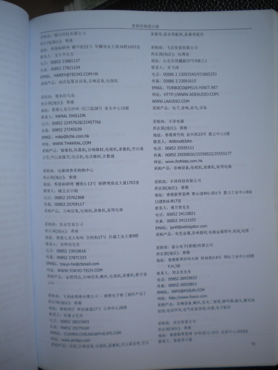 資料如何收集:在各大展會(huì)上,我們免費(fèi)向到會(huì)采購(gòu)商提供他們需要的最新產(chǎn)品雜志和光盤,我們也同時(shí)向他們派發(fā)帶有我們網(wǎng)站LOGO的精美禮品,這些最新的中國(guó)供應(yīng)商的信息,對(duì)他們很有幫助,采購(gòu)商會(huì)留下他們的名片,填寫詳細(xì)的產(chǎn)品求購(gòu)信息,以期望得到更多的供應(yīng)商的信息。收集到這些第一手的原始外商資料后,我們客戶服務(wù)中心立刻將名片掃描作成圖片,將產(chǎn)品采購(gòu)信息做成數(shù)據(jù)庫(kù),將采購(gòu)商資料按行業(yè)不同,匯編成冊(cè),出版發(fā)行《全球采購(gòu)商黃頁(yè)》系列。