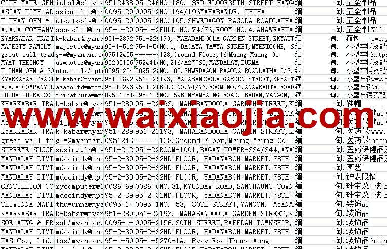 緬甸采購商名單數據為Excel格式,信息可任意修改、復制、打印、導出及導入到傳真、郵件群發(fā)等軟件中,無任何限制。