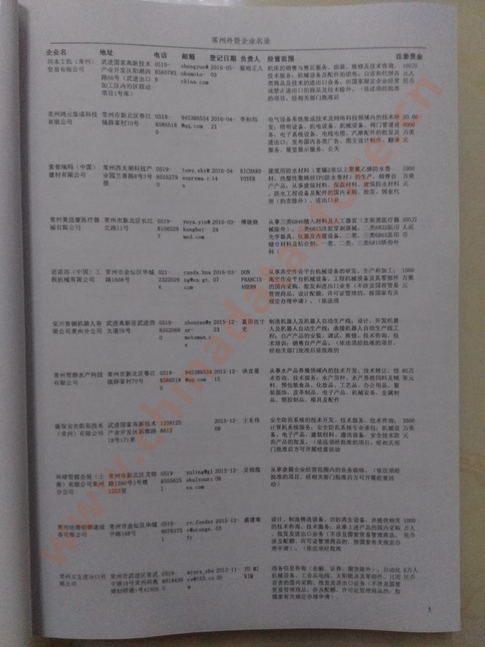 最新常州外資企業(yè)黃頁涵蓋了常州外商獨(dú)資企業(yè)、中外合資經(jīng)營企業(yè)以及港、澳、臺(tái)資企業(yè),包括常州臺(tái)資日資企業(yè)黃頁,常州外企黃頁具體內(nèi)容包括:企業(yè)名稱、地址、電話、傳真、郵箱、經(jīng)營范圍、注冊資金等信息;常州外資企業(yè)黃頁里面的企業(yè)都一些中外合資的大企業(yè),這些公司經(jīng)濟(jì)實(shí)力都比較雄厚,出口產(chǎn)品也比較多,業(yè)務(wù)范圍都比較廣,跟他們開展業(yè)務(wù)往來都比較容易;有了常州臺(tái)企日企黃頁開展業(yè)務(wù)也有了針對性,也省去了盲目去尋找客戶名單而浪費(fèi)的時(shí)間了,工作效率也會(huì)有很大的提高.歡迎需要的客戶及時(shí)聯(lián)系我們!