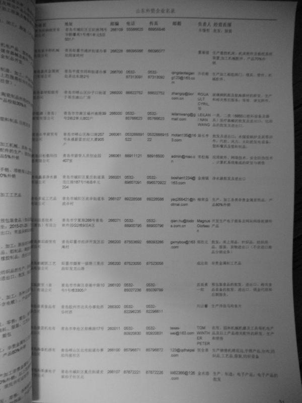 最新濟(jì)南外資企業(yè)黃頁(yè)涵蓋了濟(jì)南外商獨(dú)資企業(yè)、中外合資經(jīng)營(yíng)企業(yè)以及港、澳、臺(tái)資企業(yè),包括濟(jì)南臺(tái)資日企企業(yè)黃頁(yè),濟(jì)南外企黃頁(yè)具體內(nèi)容包括:企業(yè)名稱(chēng)、地址、電話、傳真、郵箱、經(jīng)營(yíng)范圍、注冊(cè)資金等信息;濟(jì)南外資企業(yè)名單里面的企業(yè)都一些中外合資的大企業(yè),這些公司經(jīng)濟(jì)實(shí)力都比較雄厚,出口產(chǎn)品也比較多,業(yè)務(wù)范圍都比較廣,跟他們開(kāi)展業(yè)務(wù)往來(lái)都比較容易;有了濟(jì)南日企臺(tái)企黃頁(yè)開(kāi)展業(yè)務(wù)也有了針對(duì)性,也省去了盲目去尋找客戶名單而浪費(fèi)的時(shí)間了,工作效率也會(huì)有很大的提高.歡迎需要的客戶及時(shí)聯(lián)系我們!