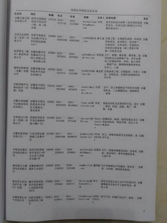 最新美國在華企業(yè)黃頁主要收錄了美國在中國境內(nèi)的獨(dú)資、合資、合作經(jīng)營等類型的企業(yè)通信黃頁,美國外商投資企業(yè)黃頁內(nèi)容有:企業(yè)名稱、地址、電話、傳真、電子郵箱、經(jīng)營范圍、注冊(cè)資金等;美資企業(yè)黃頁都是一些國際上的知名品牌企業(yè)在大陸地區(qū)設(shè)立的分公司及辦事機(jī)構(gòu),這類企業(yè)經(jīng)濟(jì)實(shí)力、技術(shù)實(shí)力與品牌效應(yīng)都比較強(qiáng),與這類企業(yè)開展合作業(yè)務(wù)是許多國內(nèi)企業(yè)夢(mèng)寐以求的事情,因此在華美資企業(yè)名單是各個(gè)國內(nèi)企業(yè)提高銷售業(yè)績必備的參考工具!