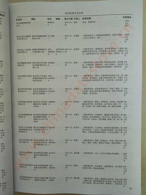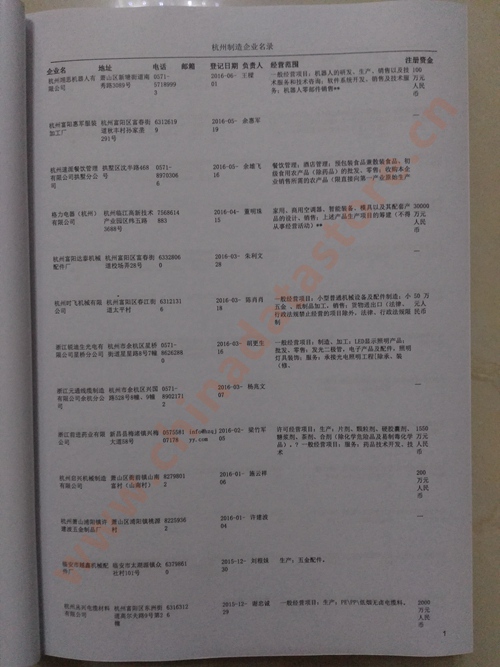 2021版最新杭州企業(yè)黃頁包括《杭州制造企業(yè)黃頁》、《杭州貿(mào)易企業(yè)黃頁》、《杭州民營企業(yè)黃頁》、《杭州外資企業(yè)黃頁》、《杭州外貿(mào)企業(yè)黃頁》共五冊,現(xiàn)優(yōu)惠價:280元/冊。每冊內(nèi)容包括:單位名稱、地址、郵編、電話、傳真、郵箱、經(jīng)營范圍等;杭州企業(yè)黃頁涵蓋了近幾年來最新成立的、有一定規(guī)模的企業(yè),具有非常高的營銷價值。有了這套黃頁開展業(yè)務(wù)也有了針對性,也省去了盲目去尋找客戶名單而浪費的時間了,工作效率也會有很大的提高。歡迎需要杭州企業(yè)黃頁的朋友及時聯(lián)系我們!