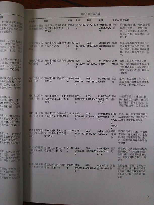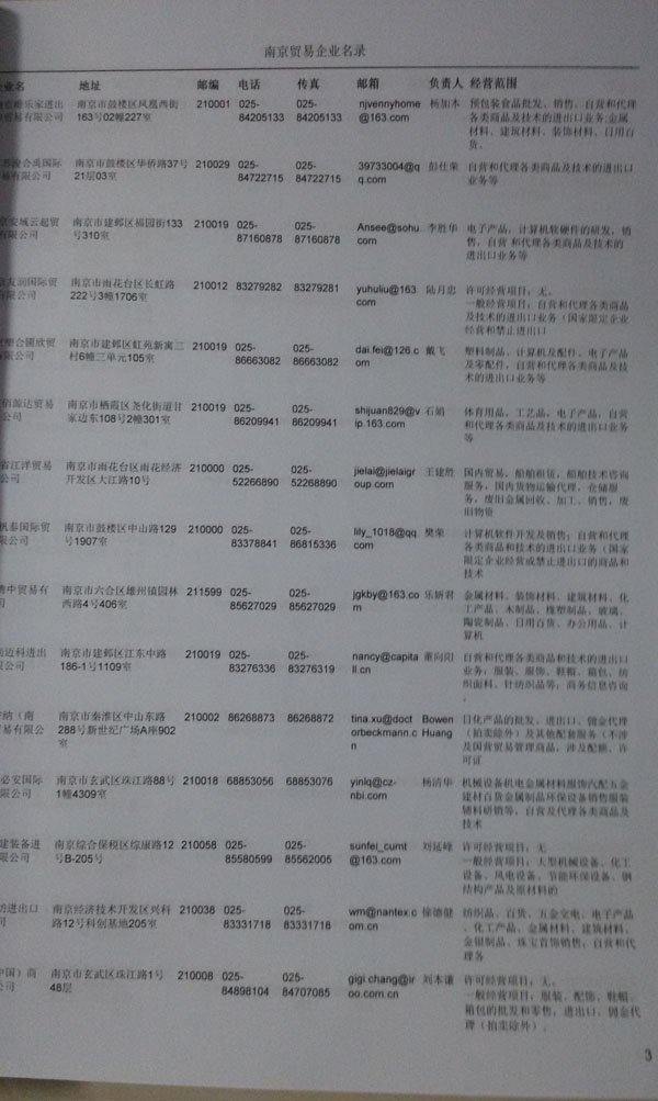 2021版最新南京企業(yè)黃頁包括《南京制造企業(yè)黃頁》、《南京貿易企業(yè)黃頁》、《南京民營企業(yè)黃頁》、《南京外資企業(yè)黃頁》、《南京外貿企業(yè)黃頁》共五冊,現優(yōu)惠價:280元/冊。每冊內容包括:單位名稱、地址、郵編、電話、傳真、郵箱、經營范圍等;南京企業(yè)黃頁涵蓋了近幾年來最新成立的、有一定規(guī)模的企業(yè),具有非常高的營銷價值。有了這套黃頁開展業(yè)務也有了針對性,也省去了盲目去尋找客戶名單而浪費的時間了,工作效率也會有很大的提高。歡迎需要南京企業(yè)黃頁的朋友及時聯系我們!
