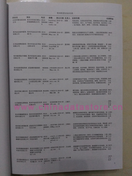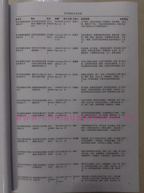 2021版最新常州企業(yè)黃頁(yè)包括《常州制造企業(yè)黃頁(yè)》、《常州貿(mào)易企業(yè)黃頁(yè)》、《常州民營(yíng)企業(yè)黃頁(yè)》、《常州外資企業(yè)黃頁(yè)》、《常州外貿(mào)企業(yè)黃頁(yè)》共五冊(cè),現(xiàn)優(yōu)惠價(jià):280元/冊(cè)。每?jī)?cè)內(nèi)容包括:?jiǎn)挝幻Q、地址、郵編、電話、傳真、郵箱、經(jīng)營(yíng)范圍等;常州企業(yè)黃頁(yè)涵蓋了近幾年來最新成立的、有一定規(guī)模的企業(yè),具有非常高的營(yíng)銷價(jià)值。有了這套黃頁(yè)開展業(yè)務(wù)也有了針對(duì)性,也省去了盲目去尋找客戶名單而浪費(fèi)的時(shí)間了,工作效率也會(huì)有很大的提高。歡迎需要常州企業(yè)黃頁(yè)的朋友及時(shí)聯(lián)系我們!