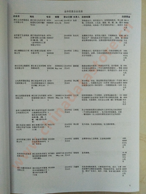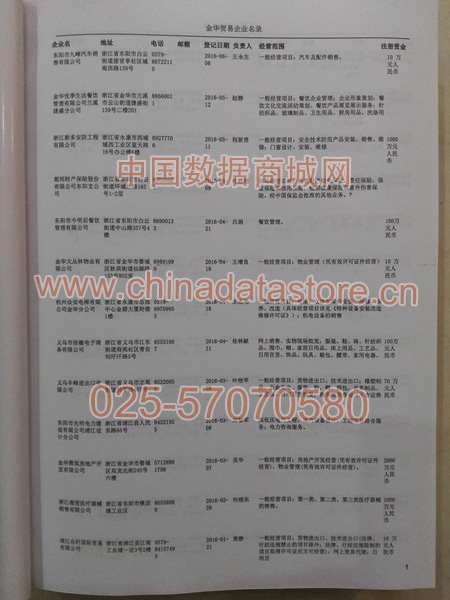 2021版最新金華企業(yè)黃頁包括《金華制造企業(yè)黃頁》、《金華貿(mào)易企業(yè)黃頁》、《金華民營企業(yè)黃頁》、《金華外資企業(yè)黃頁》、《金華外貿(mào)企業(yè)黃頁》共五冊,現(xiàn)優(yōu)惠價(jià):280元/冊。每冊內(nèi)容包括:單位名稱、地址、郵編、電話、傳真、郵箱、經(jīng)營范圍等;金華企業(yè)黃頁涵蓋了近幾年來最新成立的、有一定規(guī)模的企業(yè),具有非常高的營銷價(jià)值。有了這套黃頁開展業(yè)務(wù)也有了針對(duì)性,也省去了盲目去尋找客戶名單而浪費(fèi)的時(shí)間了,工作效率也會(huì)有很大的提高。歡迎需要金華企業(yè)黃頁的朋友及時(shí)聯(lián)系我們!