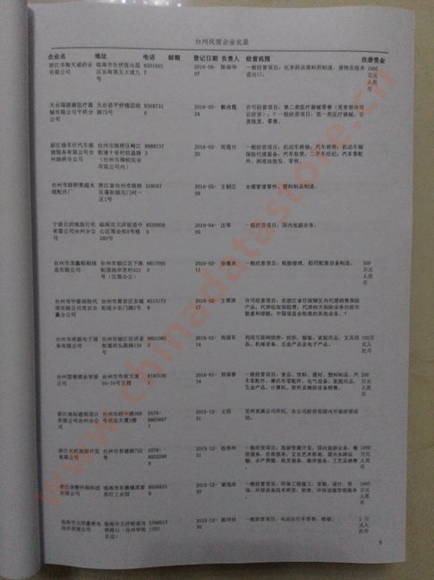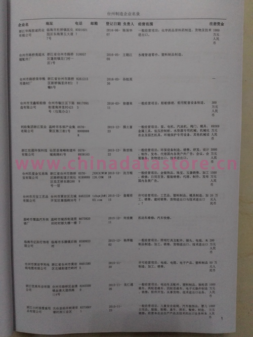 2021版最新臺州企業(yè)黃頁包括《臺州制造企業(yè)黃頁》、《臺州貿(mào)易企業(yè)黃頁》、《臺州民營企業(yè)黃頁》、《臺州外資企業(yè)黃頁》、《臺州外貿(mào)企業(yè)黃頁》共五冊,現(xiàn)優(yōu)惠價(jià):280元/冊。每冊內(nèi)容包括:單位名稱、地址、郵編、電話、傳真、郵箱、經(jīng)營范圍等;臺州企業(yè)黃頁涵蓋了近幾年來最新成立的、有一定規(guī)模的企業(yè),具有非常高的營銷價(jià)值。有了這套黃頁開展業(yè)務(wù)也有了針對性,也省去了盲目去尋找客戶名單而浪費(fèi)的時(shí)間了,工作效率也會(huì)有很大的提高。歡迎需要臺州企業(yè)黃頁的朋友及時(shí)聯(lián)系我們!