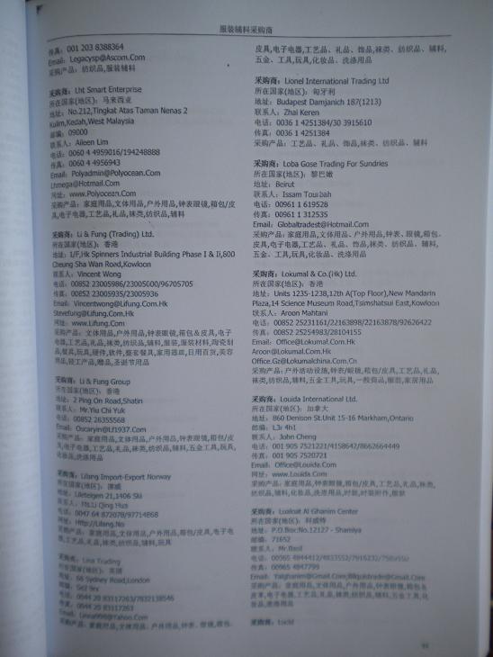 資料如何收集:在各大展會上,我們免費(fèi)向到會采購商提供他們需要的最新產(chǎn)品雜志和光盤,我們也同時向他們派發(fā)帶有我們網(wǎng)站LOGO的精美禮品,這些最新的中國供應(yīng)商的信息,對他們很有幫助,采購商會留下他們的名片,填寫詳細(xì)的產(chǎn)品求購信息,以期望得到更多的供應(yīng)商的信息。收集到這些第一手的原始外商資料后,我們客戶服務(wù)中心立刻將名片掃描作成圖片,將產(chǎn)品采購信息做成數(shù)據(jù)庫,將采購商資料按行業(yè)不同,匯編成冊,出版發(fā)行《全球采購商黃頁》系列。