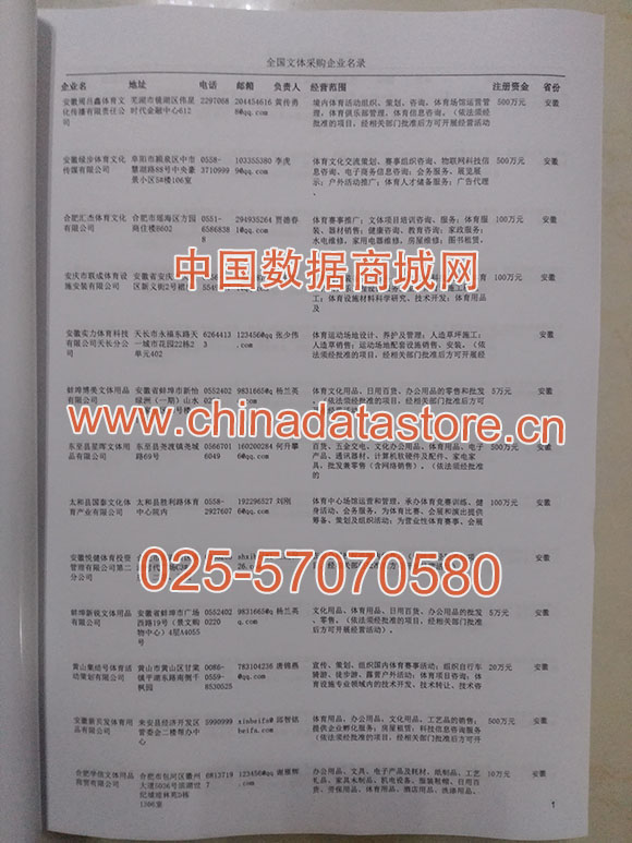 2025年新版中國文體戶外采購企業(yè)黃頁,收錄了全國各地經(jīng)營范圍涉及文體戶外產(chǎn)品的貿(mào)易企業(yè),這些都是頗具實力的文體戶外產(chǎn)品的中國采購商。黃頁內(nèi)容包含:企業(yè)名稱、地址、電話、傳真、郵箱、經(jīng)營范圍、省份、注冊資金等信息。該套黃頁包含一個黃頁光碟加一冊紙質(zhì)書刊,全國價格:1500元,省/直轄市價格:400元,城市價格:200元,共收錄了全國各地大概849(統(tǒng)計日期:2018.1)家文體戶外產(chǎn)品采購企業(yè)。黃頁光碟中是EXCEL格式,信息可任意修改、復(fù)制、打印、導(dǎo)出及導(dǎo)入到傳真、郵件群發(fā)等軟件中,無任何限制。