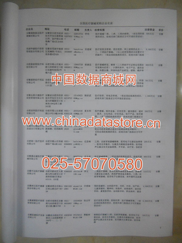 2025年新版中國(guó)醫(yī)療器械采購(gòu)企業(yè)黃頁(yè),收錄了全國(guó)各地經(jīng)營(yíng)范圍涉及醫(yī)療器械產(chǎn)品的貿(mào)易企業(yè),這些都是頗具實(shí)力的醫(yī)療器械產(chǎn)品的中國(guó)采購(gòu)商。黃頁(yè)內(nèi)容包含:企業(yè)名稱、地址、電話、傳真、郵箱、經(jīng)營(yíng)范圍、省份、注冊(cè)資金等信息。該套黃頁(yè)包含一個(gè)黃頁(yè)光碟加一冊(cè)紙質(zhì)書(shū)刊,全國(guó)價(jià)格:1200元,省/直轄市價(jià)格是:400元,城市價(jià)格是:200元,共收錄了全國(guó)各地大概36680家(更新日期:2017.1)醫(yī)療器械產(chǎn)品采購(gòu)企業(yè)。黃頁(yè)光碟中是EXCEL格式,信息可任意修改、復(fù)制、打印、導(dǎo)出及導(dǎo)入到傳真、郵件群發(fā)等軟件中,無(wú)任何限制。