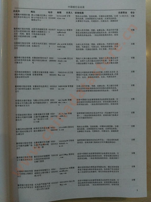 某省或直轄市 如上海、浙江銀行業(yè)名單  80% - 90% 600元 附贈(zèng)一冊(cè)銀行業(yè)紙質(zhì)印刷品