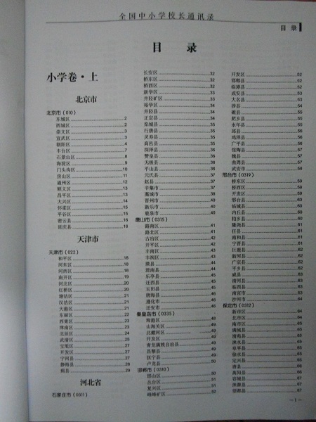某省或直轄市 如上海、浙江小學名單  80% - 90% 500元 附贈一冊全國小學校長通訊錄印刷品