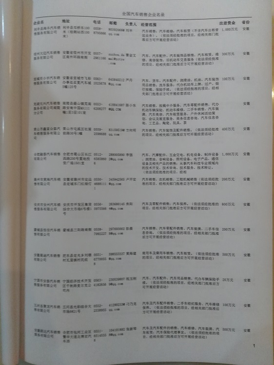 汽車(chē)銷(xiāo)售企業(yè)黃頁(yè)收錄了最新的汽車(chē)銷(xiāo)售企業(yè)名單,具有極高的營(yíng)銷(xiāo)價(jià)值,實(shí)實(shí)在在提高銷(xiāo)售業(yè)績(jī)