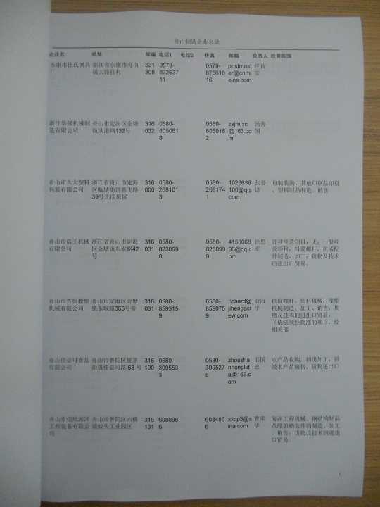 2021版最新舟山企業(yè)黃頁(yè)包括《舟山制造企業(yè)黃頁(yè)》、《舟山民營(yíng)企業(yè)黃頁(yè)》,現(xiàn)優(yōu)惠價(jià):280元/冊(cè)。每?jī)?cè)內(nèi)容包括:?jiǎn)挝幻Q、地址、郵編、電話、傳真、郵箱、經(jīng)營(yíng)范圍等;舟山企業(yè)黃頁(yè)涵蓋了近幾年來(lái)最新成立的、有一定規(guī)模的企業(yè),具有非常高的營(yíng)銷價(jià)值。有了這套黃頁(yè)開展業(yè)務(wù)也有了針對(duì)性,也省去了盲目去尋找客戶名單而浪費(fèi)的時(shí)間了,工作效率也會(huì)有很大的提高。歡迎需要舟山企業(yè)黃頁(yè)的朋友及時(shí)聯(lián)系我們!