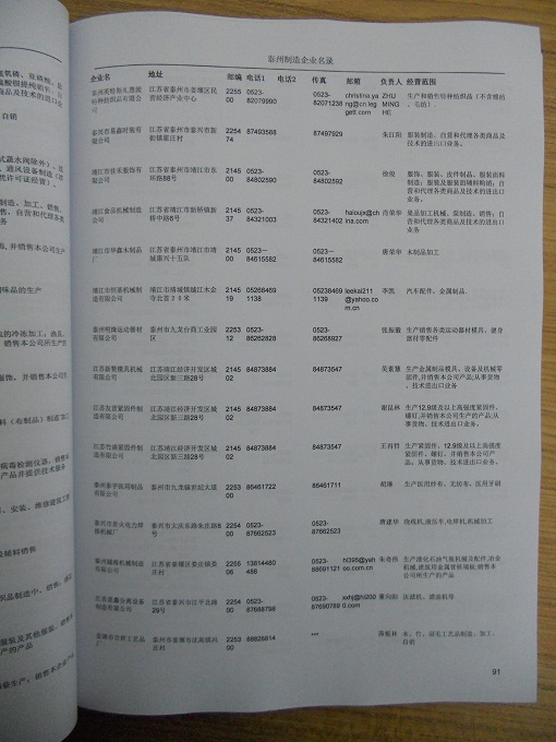 2021版最新泰州企業(yè)黃頁(yè)包括《泰州制造企業(yè)黃頁(yè)》、《泰州民營(yíng)企業(yè)黃頁(yè)》,現(xiàn)優(yōu)惠價(jià):280元/冊(cè)。每?jī)?cè)內(nèi)容包括:?jiǎn)挝幻Q、地址、郵編、電話、傳真、郵箱、經(jīng)營(yíng)范圍等;泰州企業(yè)黃頁(yè)涵蓋了近幾年來(lái)最新成立的、有一定規(guī)模的企業(yè),具有非常高的營(yíng)銷價(jià)值。有了這套黃頁(yè)開(kāi)展業(yè)務(wù)也有了針對(duì)性,也省去了盲目去尋找客戶名單而浪費(fèi)的時(shí)間了,工作效率也會(huì)有很大的提高。歡迎需要泰州企業(yè)黃頁(yè)的朋友及時(shí)聯(lián)系我們!