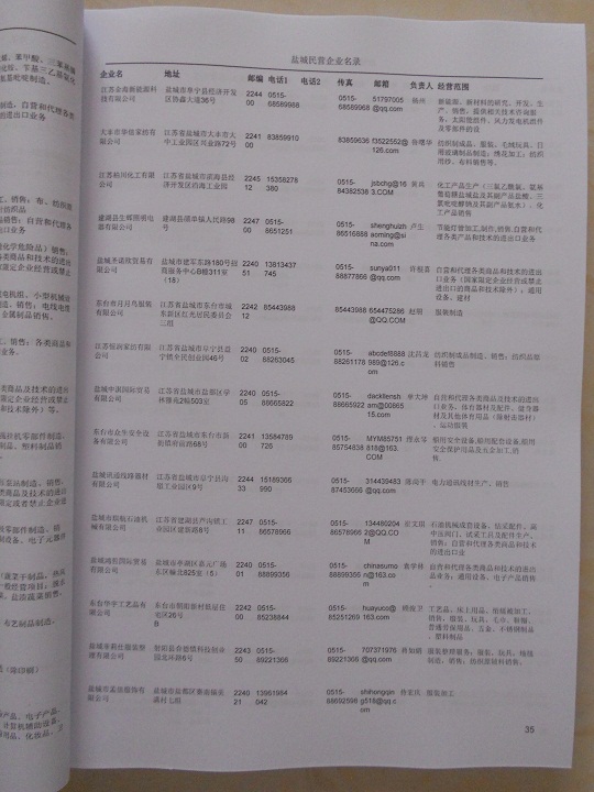 2021版最新鹽城企業(yè)黃頁包括《鹽城制造企業(yè)黃頁》、《鹽城民營企業(yè)黃頁》,現(xiàn)優(yōu)惠價:280元/冊。每冊內(nèi)容包括:單位名稱、地址、郵編、電話、傳真、郵箱、經(jīng)營范圍等;鹽城企業(yè)黃頁涵蓋了近幾年來最新成立的、有一定規(guī)模的企業(yè),具有非常高的營銷價值。有了這套黃頁開展業(yè)務(wù)也有了針對性,也省去了盲目去尋找客戶名單而浪費(fèi)的時間了,工作效率也會有很大的提高。歡迎需要鹽城企業(yè)黃頁的朋友及時聯(lián)系我們!