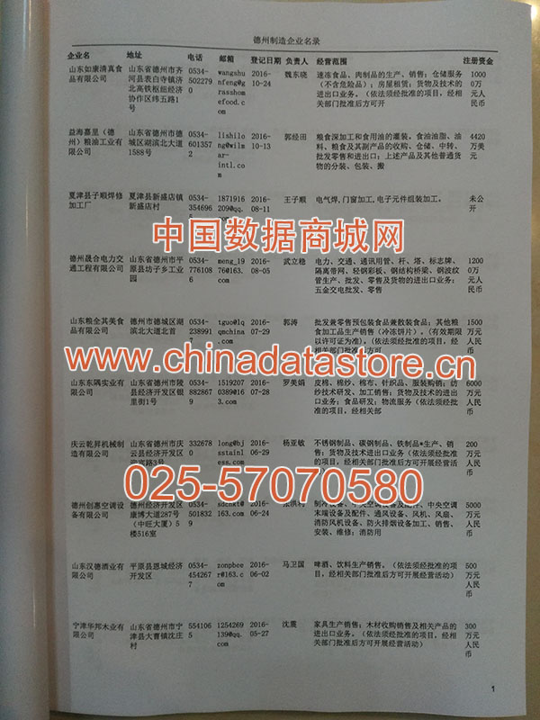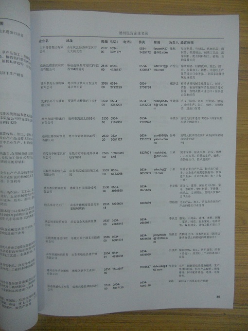 2021版最新德州企業(yè)黃頁(yè)包括《德州制造企業(yè)黃頁(yè)》、《德州民營(yíng)企業(yè)黃頁(yè)》,現(xiàn)優(yōu)惠價(jià):280元/冊(cè)。每?jī)?cè)內(nèi)容包括:?jiǎn)挝幻Q、地址、郵編、電話、傳真、郵箱、經(jīng)營(yíng)范圍等;德州企業(yè)黃頁(yè)涵蓋了近幾年來(lái)最新成立的、有一定規(guī)模的企業(yè),具有非常高的營(yíng)銷(xiāo)價(jià)值。有了這套黃頁(yè)開(kāi)展業(yè)務(wù)也有了針對(duì)性,也省去了盲目去尋找客戶名單而浪費(fèi)的時(shí)間了,工作效率也會(huì)有很大的提高。歡迎需要德州企業(yè)黃頁(yè)的朋友及時(shí)聯(lián)系我們!