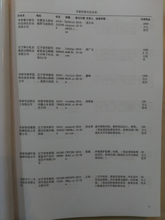 2021版最新阜新企業(yè)黃頁包括《阜新制造企業(yè)黃頁》、《阜新民營企業(yè)黃頁》,現(xiàn)優(yōu)惠價:280元/冊。每冊內(nèi)容包括:單位名稱、地址、郵編、電話、傳真、郵箱、經(jīng)營范圍等;阜新企業(yè)黃頁涵蓋了近幾年來最新成立的、有一定規(guī)模的企業(yè),具有非常高的營銷價值。有了這套黃頁開展業(yè)務也有了針對性,也省去了盲目去尋找客戶名單而浪費的時間了,工作效率也會有很大的提高。歡迎需要阜新企業(yè)黃頁的朋友及時聯(lián)系我們!
