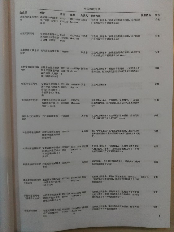 某省或直轄市 如上海、浙江網(wǎng)吧名單  80% - 90% 600元 附贈一冊網(wǎng)吧紙質印刷品