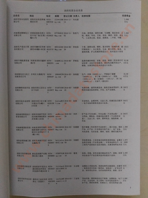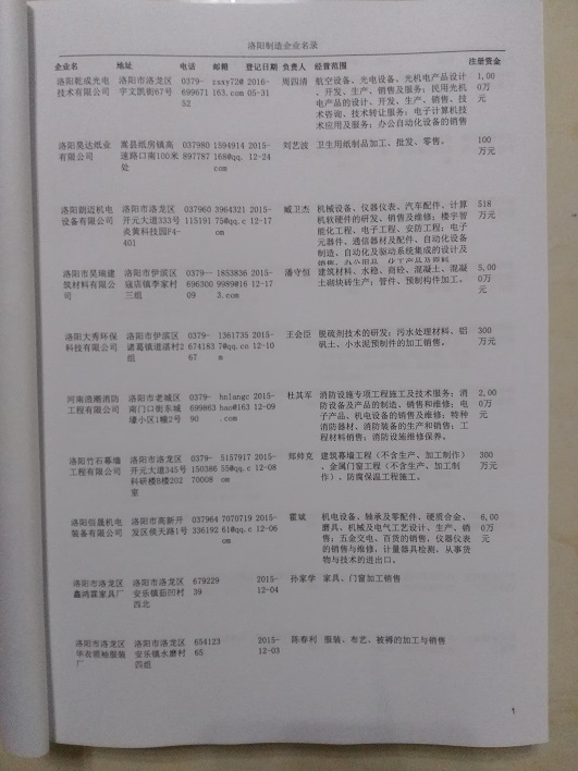 2021版最新洛陽企業(yè)黃頁包括《洛陽制造企業(yè)黃頁》、《洛陽民營企業(yè)黃頁》,現(xiàn)優(yōu)惠價:280元/冊。每冊內(nèi)容包括:單位名稱、地址、郵編、電話、傳真、郵箱、經(jīng)營范圍等;洛陽企業(yè)黃頁涵蓋了近幾年來最新成立的、有一定規(guī)模的企業(yè),具有非常高的營銷價值。有了這套黃頁開展業(yè)務(wù)也有了針對性,也省去了盲目去尋找客戶名單而浪費的時間了,工作效率也會有很大的提高。歡迎需要洛陽企業(yè)黃頁的朋友及時聯(lián)系我們!