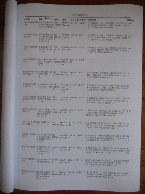 2021版最新西安企業(yè)黃頁(yè)包括《西安制造企業(yè)黃頁(yè)》、《西安民營(yíng)企業(yè)黃頁(yè)》,現(xiàn)優(yōu)惠價(jià):280元/冊(cè)。每?jī)?cè)內(nèi)容包括:?jiǎn)挝幻Q、地址、郵編、電話、傳真、郵箱、經(jīng)營(yíng)范圍等;西安企業(yè)黃頁(yè)涵蓋了近幾年來(lái)最新成立的、有一定規(guī)模的企業(yè),具有非常高的營(yíng)銷價(jià)值。有了這套黃頁(yè)開(kāi)展業(yè)務(wù)也有了針對(duì)性,也省去了盲目去尋找客戶名單而浪費(fèi)的時(shí)間了,工作效率也會(huì)有很大的提高。歡迎需要西安企業(yè)黃頁(yè)的朋友及時(shí)聯(lián)系我們!