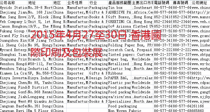簡介:2015年香港貿(mào)發(fā)局展會會刊共收錄28個展會參展商信息。數(shù)據(jù)格式EXCEL,會刊內(nèi)容包含:公司名稱、地址、地區(qū)、業(yè)務(wù)性質(zhì)、行業(yè)、產(chǎn)品服務(wù)范圍、出口市場、電話、傳真、網(wǎng)址。