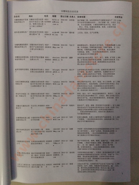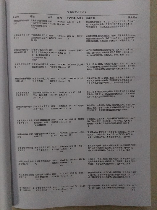 2021版最新安徽企業(yè)黃頁包括《安徽制造企業(yè)黃頁》、《安徽貿(mào)易企業(yè)黃頁》、《安徽民營企業(yè)黃頁》共三冊,優(yōu)惠價(jià):280元/冊。每冊內(nèi)容包括:單位名稱、地址、郵編、電話、傳真、郵箱、經(jīng)營范圍等;安徽企業(yè)黃頁涵蓋了近幾年來最新成立的、有一定規(guī)模的企業(yè),具有非常高的營銷價(jià)值。有了這套黃頁開展業(yè)務(wù)也有了針對性,也省去了盲目去尋找客戶名單而浪費(fèi)的時間了,工作效率也會有很大的提高。歡迎需要安徽企業(yè)黃頁的朋友及時聯(lián)系我們!