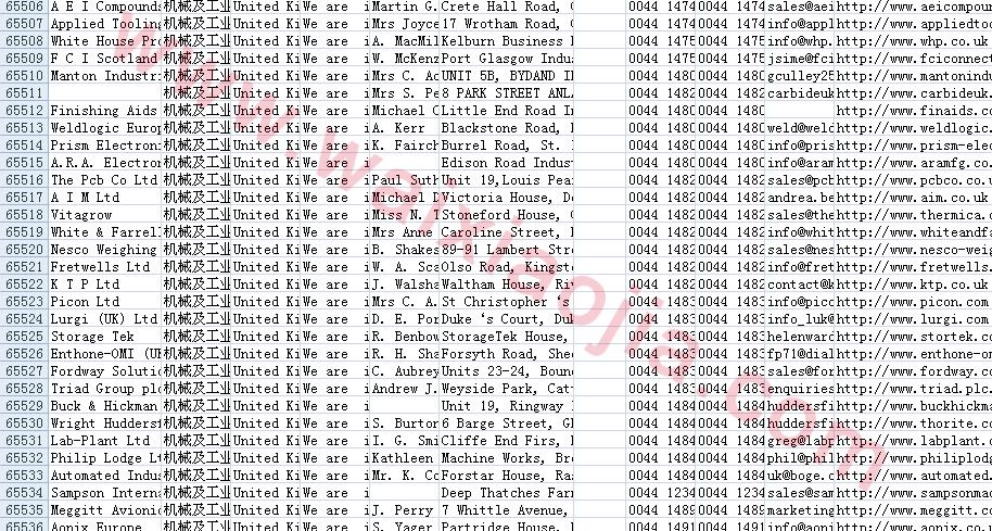機(jī)械及工業(yè)制品采購(gòu)商名單數(shù)據(jù)為Excel格式,信息可任意修改、復(fù)制、打印、導(dǎo)出及導(dǎo)入到傳真、郵件群發(fā)等軟件中,無(wú)任何限制。