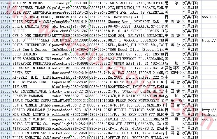 燈具燈飾采購(gòu)商名單數(shù)據(jù)為Excel格式,信息可任意修改、復(fù)制、打印、導(dǎo)出及導(dǎo)入到傳真、郵件群發(fā)等軟件中,無(wú)任何限制。