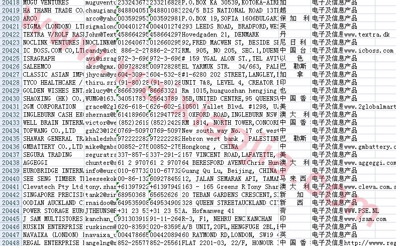 電子及信息產(chǎn)品采購(gòu)商名單數(shù)據(jù)為Excel格式,信息可任意修改、復(fù)制、打印、導(dǎo)出及導(dǎo)入到傳真、郵件群發(fā)等軟件中,無(wú)任何限制。