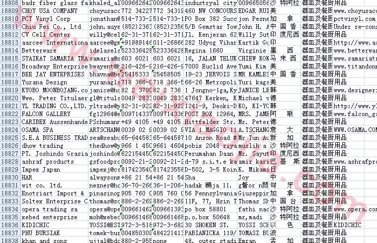 器皿及餐廚用品采購(gòu)商名單數(shù)據(jù)為Excel格式,信息可任意修改、復(fù)制、打印、導(dǎo)出及導(dǎo)入到傳真、郵件群發(fā)等軟件中,無(wú)任何限制。