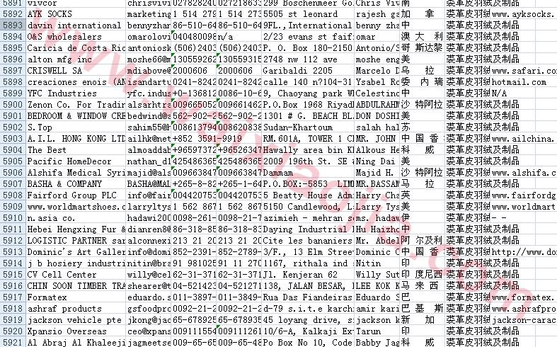 裘皮革羽絨及制品采購商名單數(shù)據為Excel格式,信息可任意修改、復制、打印、導出及導入到傳真、郵件群發(fā)等軟件中,無任何限制。