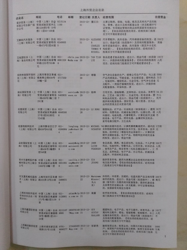最新上海外資企業(yè)黃頁(yè)涵蓋了上海外商獨(dú)資企業(yè)、中外合資經(jīng)營(yíng)企業(yè)以及港、澳、臺(tái)資企業(yè),包括上海日企臺(tái)企黃頁(yè)等,具體內(nèi)容包括:企業(yè)名稱、地址、電話、傳真、郵箱、經(jīng)營(yíng)范圍、注冊(cè)資金等信息;上海外資企業(yè)名單里面的企業(yè)都一些中外合資的大企業(yè),這些公司經(jīng)濟(jì)實(shí)力都比較雄厚,出口產(chǎn)品也比較多,業(yè)務(wù)范圍都比較廣,跟他們開(kāi)展業(yè)務(wù)往來(lái)都比較容易;有了上海日資臺(tái)資等企業(yè)黃頁(yè)開(kāi)展業(yè)務(wù)也有了針對(duì)性,也省去了盲目去尋找客戶名單而浪費(fèi)的時(shí)間了,工作效率也會(huì)有很大的提高.歡迎需要客戶及時(shí)聯(lián)系我們!