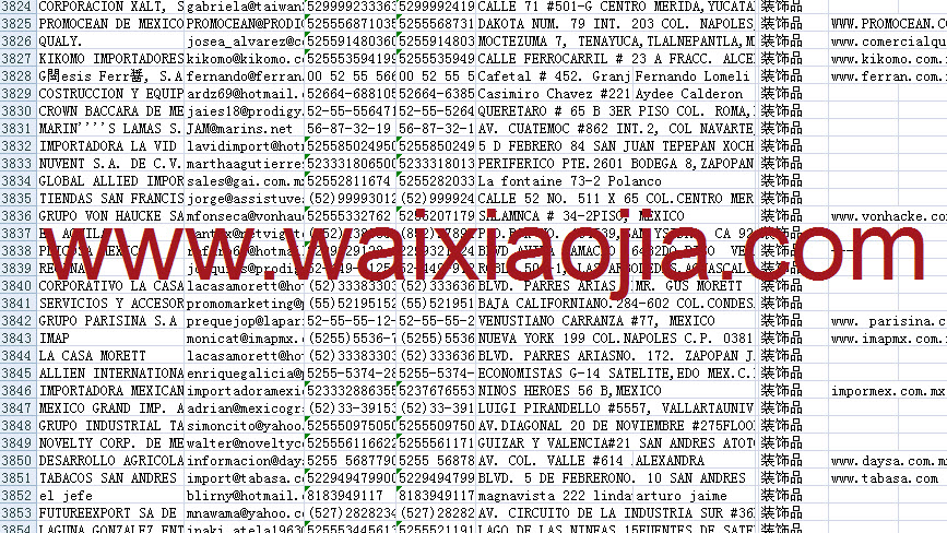 墨西哥采購商名單數(shù)據(jù)為Excel格式,信息可任意修改、復制、打印、導出及導入到傳真、郵件群發(fā)等軟件中,無任何限制。
