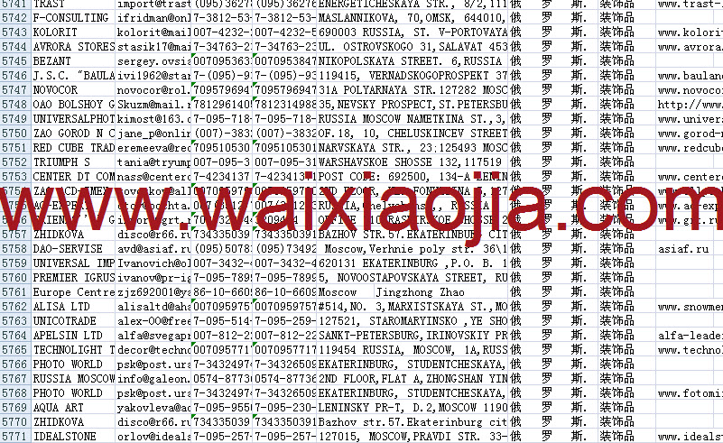 俄羅斯采購(gòu)商名單數(shù)據(jù)為Excel格式,信息可任意修改、復(fù)制、打印、導(dǎo)出及導(dǎo)入到傳真、郵件群發(fā)等軟件中,無任何限制。