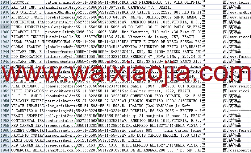巴西采購商名單數(shù)據(jù)為Excel格式,信息可任意修改、復制、打印、導出及導入到傳真、郵件群發(fā)等軟件中,無任何限制。