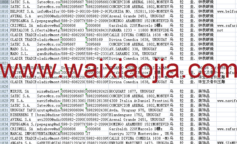 烏拉圭采購商名單數(shù)據(jù)為Excel格式,信息可任意修改、復(fù)制、打印、導(dǎo)出及導(dǎo)入到傳真、郵件群發(fā)等軟件中,無任何限制。